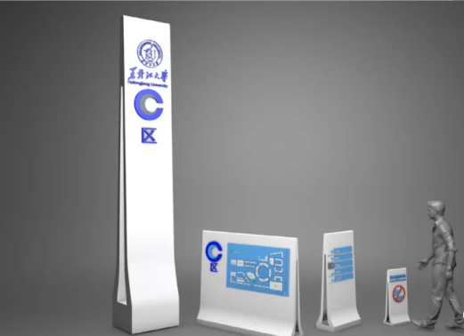導向分級原則則類似,要依照從外到內,從大到小的順序。通過對校園環境的分析調研(學校性質不同,標識系統的設計內容與設計風格應有所區別),對標識系統進行分類,便于設計工作有條不紊地展開。