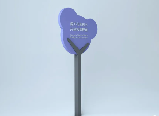校園環境標識四級導向可以作為導向,即門牌/設施牌/窗口牌/桌牌/樹木牌、草地牌(外環境)。其中設施牌主要指的是公共服務設施中的標牌,如洗手間、投幣飲料機等,窗口牌則主要針對校內銀行、學生食堂、公共浴室等空間內部的功能性指示牌。至于草地牌,作為校園環境景觀的一個重要組成部分,不必完全嚴格按照園林系統公共標志實施規程執行,可以設計有校園特色的、溫馨的標識,無論從造型、語言還是色彩均可如此。樹木牌在校園樹種層次較多的情況下,非常有必要設置,生活中不乏這樣的實例,在一個環境中生活了數年,對環境中的樹木花草知曉名稱習性的人少之又少,在學校這樣的環境中,有必要使學生了解樹木花草的名稱、產地、習性等,既為環境添色又增長了知識。
