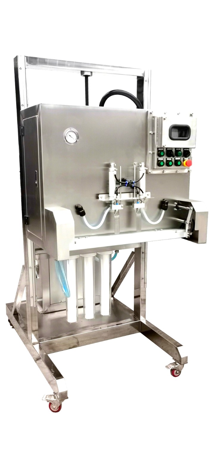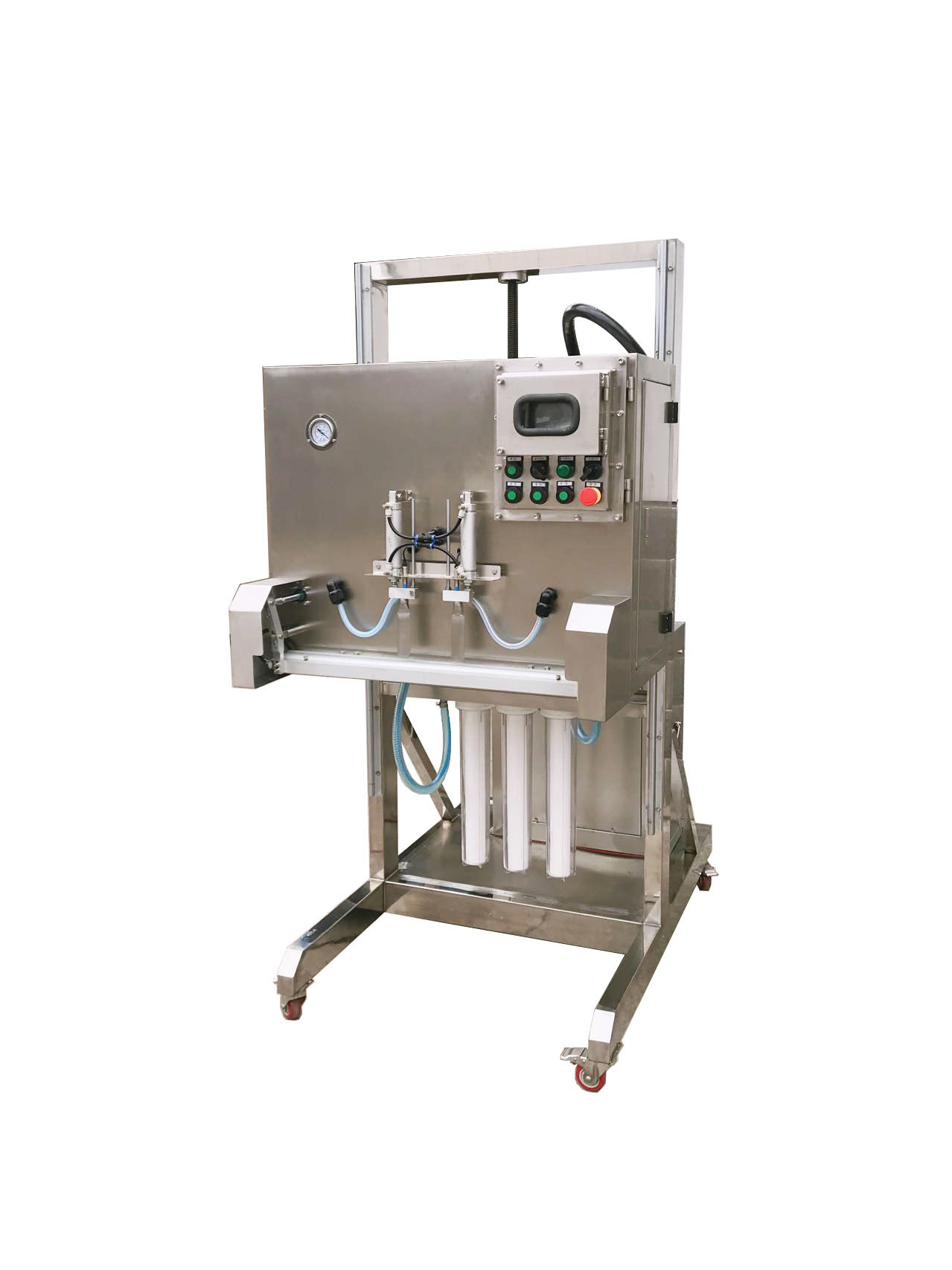 機(jī)頭可上下調(diào)節(jié),PLC觸摸屏控制,三級1微米過濾。